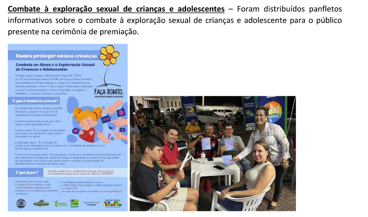 São realizadas apresentações para alunos de escola pública e/ou particular sobre preservação do meio ambiente e os impactos positivos da pesca esportiva para o município, com a distribuição de brindes. As Secretarias Municipais de Turismo e Educação, conjuntamente, realizaram concurso de redação e desenho sobre meio ambiente, sendo os ganhadores premiados pelo Circuito Gigantes do Araguaia.